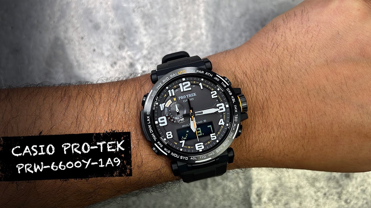 Casio - PROTREK, 51.5mm Black Stainless Steel Case Black Silicone Band Digital Quartz - PRW6600Y-1A9