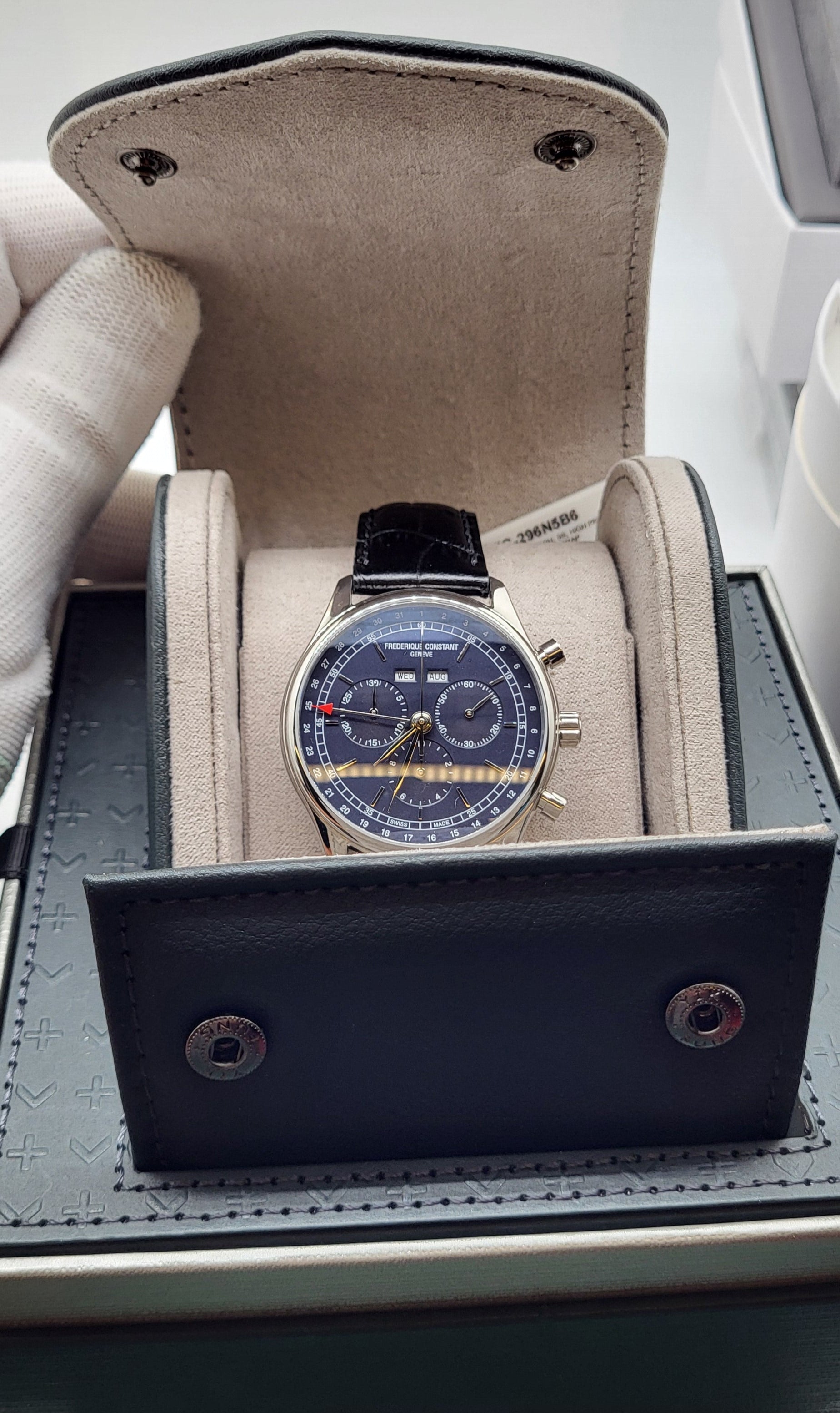 Frederique Constant - Stainless Black Leather Chrono Triple Calendar
